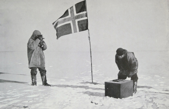 아문센은 처음에는 북극점을 정복하려고 했어요. 하지만 북극점이 이미 정복됐다는 소식을 듣고 목표를 남극점 정복으로 바꿉니다. 아문센은 탐험을 위해 출발 전 치밀한 준비를 한 것으로 유명해요. 특히 말이 극지방 탐험에 맞지 않는다는 이야기를 듣고 과감히 포기하고 개썰매만을 이용하였습니다.